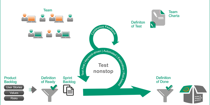 Agile development (e.g. Scrum) reduces the cycle time to sprints between one and four weeks. Quality assurance and testing has to keep up with the increased frequency of the releases. This is necessary at all levels of testing – from unit tests to integration tests and on to system tests. Crucial here is the collaboration between developers and testers.